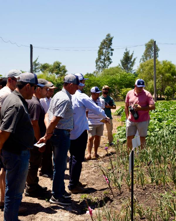 La instancia permitió compartir avances de investigación y ensayos a campo, abordando el manejo de enfermedades de suelo en ajo, evaluaciones técnicas en cebolla con muy buen desempeño del producto Tetramat.